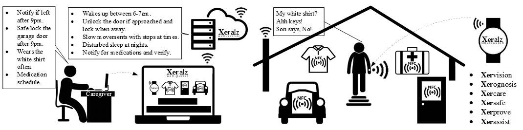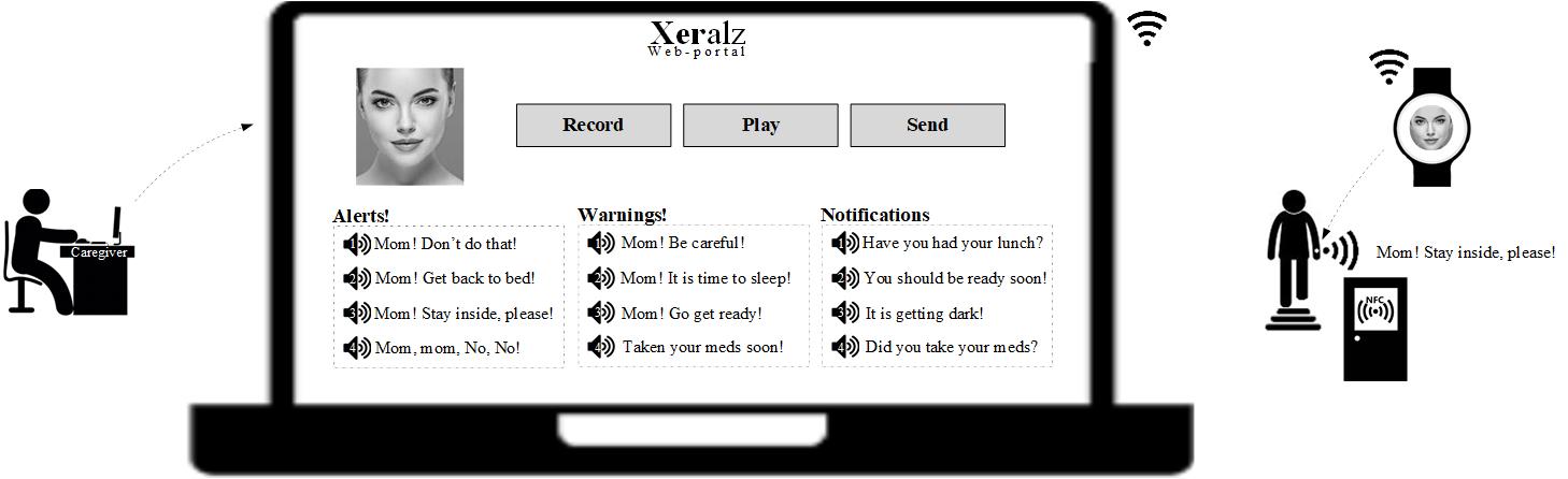 The complexity of the Alzheimer’s disease makes it extremely challenging to have a useful solution developed for many patients. Alzheimer’s community tend to also conclude that technology cannot be effective since it does not solve real problems. We have developed a first in kind and a full-fledge assistive technology product named Xeralz aimed at patients afflicted with dementia and Alzheimer’s disease. This software product is to be available from online stores and deployed across commercially available smartwatches that currently support sensors capable of tracking patients’ movements and biology and also provide a variety of communication means. This product comprises five major sub-products, namely, Xervision, Xerognosis, Xercare, Xersafe and Xerprove . As the names may suggest, they maintain supervision of patients, institute a dedicated prognosis tool, provide care to patients, guard patient’s safety and try to improve patient’s existing abilities. Since power consumption is critical in wearable technologies, analyzing algorithms are optimized, designed to make use of sensors optimally. We intend to prepare a platform for future developers to build upon and extend. Xeralz is currently intended for Samsung Gear S4 but will be ported to Android Wear and Apple Watch as well.
