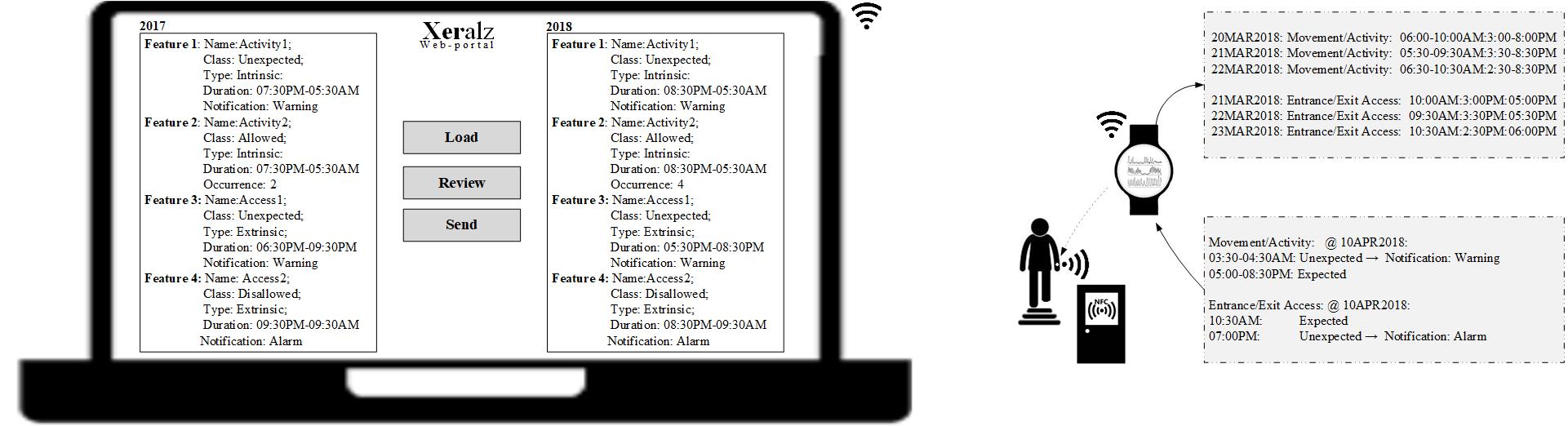 comprises two toolsets, the Internal and External Mitigators. The Internal Mitigator tries to moderate or identify the risks initiated by patients’ actions including falls, perilous movements and driving accidents. The External Mitigator identifies and informs of hazards in the environment. Hazards may include vehicle or non-vehicle accidents, extreme changes in temperature, fire, drowning, prolonged sun exposure and presence in hazardous areas. Both Mitigators consider depreciating patients conditions.